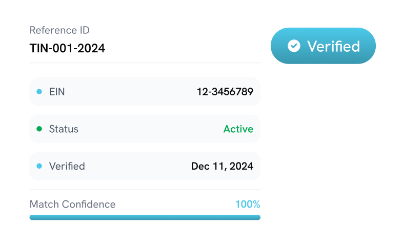 Verify business identity, run TIN/EIN checks, screen 40+ sanctions/watchlists, collect registration documents, for full KYB assurance from a single platform.