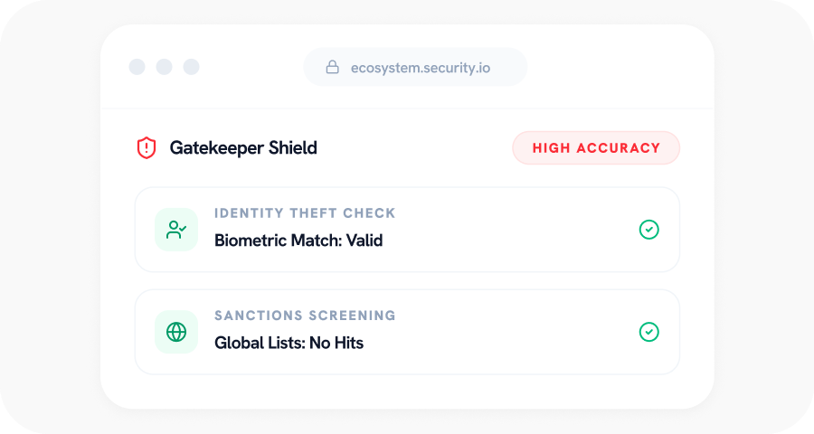 Stop fraudsters, fake accounts, identity theft, and suspicious activity before they reach your platform. Automated identity verification and screening against sanctions and watchlists ensure only legitimate users gain access to your platform.