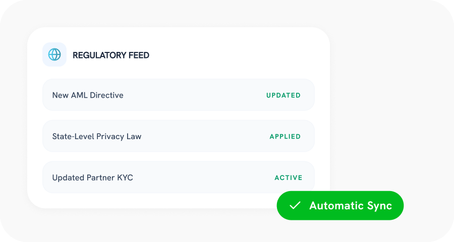 Fintech compliance doesn’t stand still. Stay aligned with changing regulatory and partner requirements by automatically applying continuous checks.